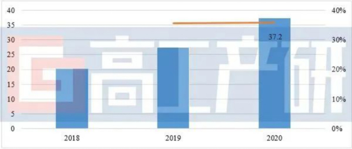 GGII统计数据显示,2020年中国锂电隔膜出货量37.2亿平米,同比增长36%,增长主要原因有:1、2020年国内动力电池出货量近80GWh和欧洲电动汽车销量增长超预期,带动国内动力锂电池隔膜出货增长和头部隔膜企业出口增长;