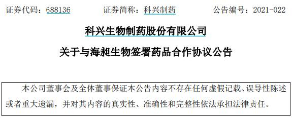 4月26日,科兴制药(688136)发布公告,公司与海昶生物签署了药品合作协议,海昶生物将其研发产品管线中研发代号为HC007的除美国市场外商业化权益转让给公司,双方拟就HC007的合作开发、商业化、技术转移、产业化及持证权益转移开展合作。科兴制药根据具体合作的研发及商业化、产业化和持证权益转让进度向海昶生物支付累计不超过7000万的签约金和里程金;同时按双方约定的条件及方式向海昶生物支付销售权利金。