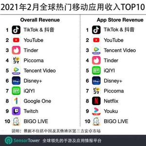 但“左滑右滑”这种高效的dating产品模式,其实是很先进和高价值的。Tinder在全球非游戏应用中有极高的收入,仅次于TikTok与YouTube这两款超级DAU产品。