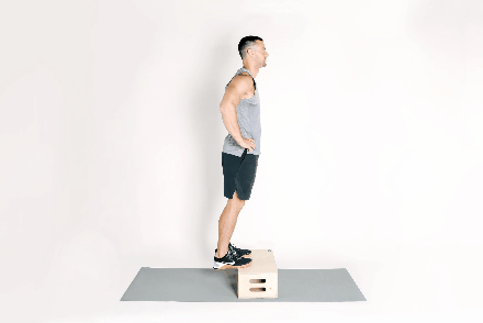 训练方式:站在台阶上或者一块重量足够的砖块上,脚后跟在台阶或砖的边缘之外。开始前,可以扶着栏杆或者墙壁以保持平衡。
