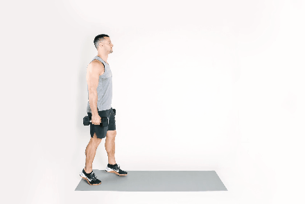 训练方式:手握一对沉重的哑铃笔直放在身体两侧,如果条件允许,选择能够承受的最重的哑铃。