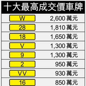 其实不止北上广深如此,香港车牌跟香港楼价一样早已贵得让人大跌眼镜,不久前香港运输署举办的新春车牌拍卖会,其中唯一的自订车牌、单一英文字母“W”,以天价2600万港币被投得,创下新记录。