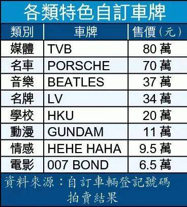 政府规定,车主可以自行选择喜欢的车牌号码,然后经过批准和竞投后便可上牌。最重要的是,港府推行该制度后,车牌竞投后的拍卖收入,都将作为扶贫费用。