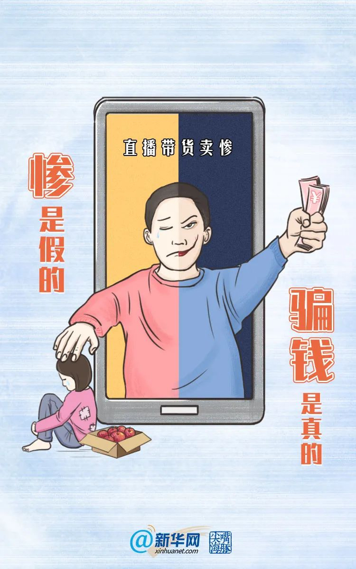 也许有人认为,一些主播只是利用“卖惨”多卖了几箱苹果几筐梨,多赚了微不足道的一点钱,损害不大。但是从长远看,“卖惨”带货会变带“祸”,消费善良会让每个人都成为受害者。