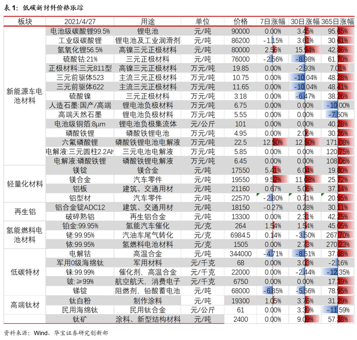 碳中和下镁合金减排优势凸显,钛白粉维持高景气——低碳新材料高频数据跟踪点评