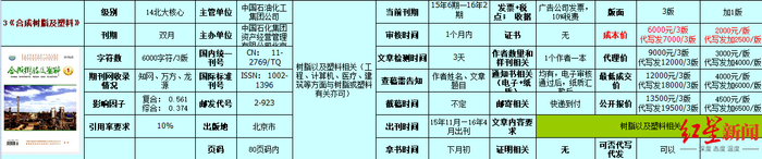 上述“文化传播公司”为期刊《合成树脂及塑料》开出的版面报价。