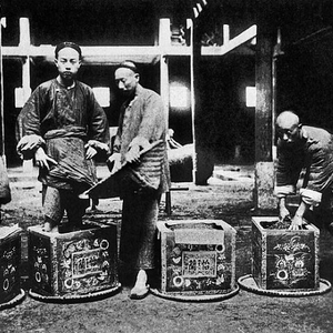 正在将茶叶装箱的中国工人。截止到 1878 年,俄国商人已在汉口的英租界内设立了六家茶厂。