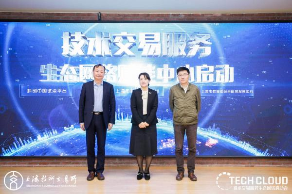 第二场启动仪式上,上海技术交易所联合上海教育委员会科技发展中心、上海市科技创业中心、科创中国试点平台三大机构共同开启了技术交易服务生态网络赋能中心。赋能中心启用以后,三大机构将为技术交易要素市场联合提供全方位的支撑与链接,从人才、高校成果、创新企业与创新载体三个方面实现技术要素资源的赋能与优化配置,从而推动技术要素市场高质量发展。其中,科创中国试点平台由百余名院士挂帅,拥有137家学会,279家地方科协、105个科技服务团,将为赋能中心的科技专业人才提供保障。上海市科技创业中心拥有30000家创新企业、17012家高新技术企业、2157家科技小巨人企业和500余家创新创业载体,这些企业资源都将赋能于技术交易生态网络,推动企业技术的转移转化。上海教育委员会科技发展中心则拥有全国最为集聚的高校科研成果,承担着60多所上海高校科技管理工作,30多所本科高校学科体系建设和科技发展动态,以及18所理工农医类本科高校推进技术转移体系建设,将为赋能中心源源不断的提供技术成果方面的各项资源。