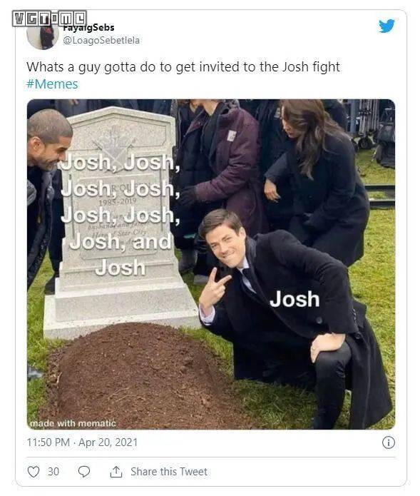 这封看似无厘头的挑战状,只在社交媒体上传播了很短一段时间。正当乔什·斯温以为他的玩笑话会快要被人淡忘,一年之期临近时,各种相关的梗又突然冒出来,谁也没想到“乔什们”决定赴约参战。