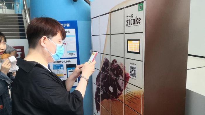 最近几天,前往上海大学生体育中心注射疫苗的市民发现了一种“无人面包店”。