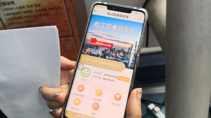 近期,上海100多家21cake的“无人面包店”还贴上了“食安码”。消费者可以通过手机扫码,查看食品经营单位的证照、监管情况、从业人员信息、食品溯源信息和监督抽检等信息,更好地维护自己的知情权。