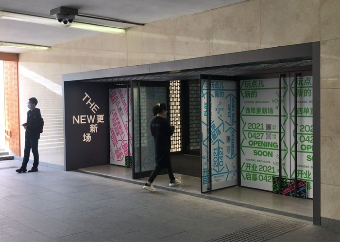4月27日更新场开业首日,新京报记者到场探访。这里与西单地铁站出入口相连,从地铁站台上扶梯后,就能直接进场,同时也可以从下沉广场的其他入口进入。