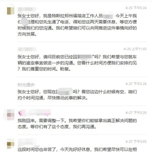 1.与张女士沟通情况:4月27日下午2时29分,我们已经与张女士取得联系,表达了进一步沟通的意愿和诚意。张女士表示,“我刚回来。需要调整一下。我希望你们能够拿出真正解决问题的态度。等你们有了这个态度,我们再沟通。”