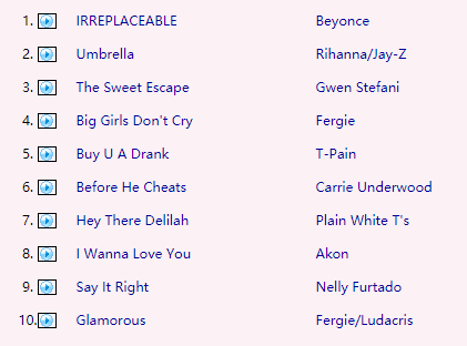 而2007年Rick Astley早就已经“过气”,当时欧美榜单上是什么歌?是碧昂丝、蕾哈娜、黑眼豆豆、阿肯。