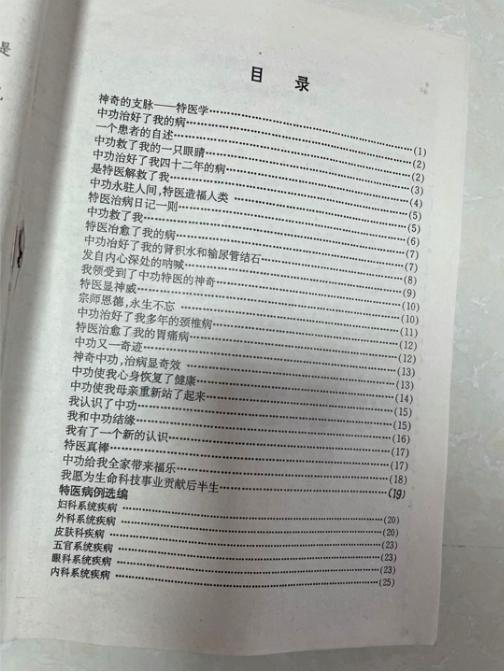 在其印制的宣传书籍中,充斥着不少如今看来匪夷所思的“医学奇迹”。如:外伤性高位截瘫患者在经“中功”特医手法治疗一疗程后四肢伸屈自如;不能讲话的全瘫患者经“中功”特医调治一次后便能开口说话,三天后再次复治不但讲话流利,而且能下床走路……