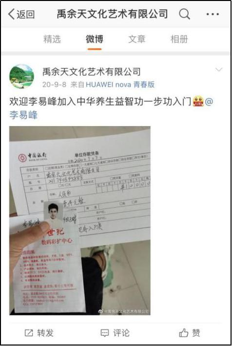 为了快速招揽信徒,孙旭慧还专门注册了与公司同名的微信公众号和微博,开始宣扬张宏堡及其“中功”邪说,并称自己是张宏堡公开授权的法定执行人,宣布门内所有事宜皆由她全权负责。