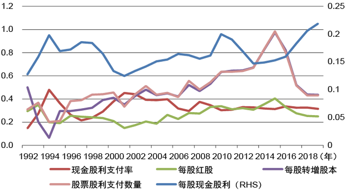 本部分从我国资本市场股利支付特征、资本利得效应和投资者分布角度分析资本市场财富效应特征。