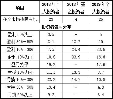 表5:个人投资者和基金投资者盈亏占比(单位:%)