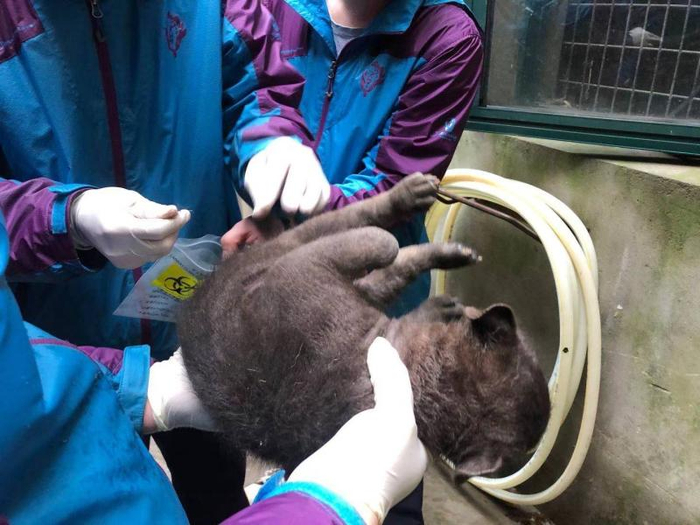饲养员介绍,新生斑鬣狗幼仔不容易区分性别,园方为此特意提取了幼仔毛发进行DNA鉴定,雌性染色体为“XX”,雄性染色体为“XY”。鉴定结果显示,新生儿是一只雌性宝宝。