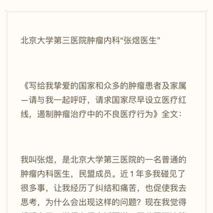 日前,北京大学第三医院肿瘤内科医生张煜撰写长文,质疑肿瘤治疗中的不良医疗行为,引发舆论广泛关注。知乎上就此设置一个提问:如何评价张煜医生?