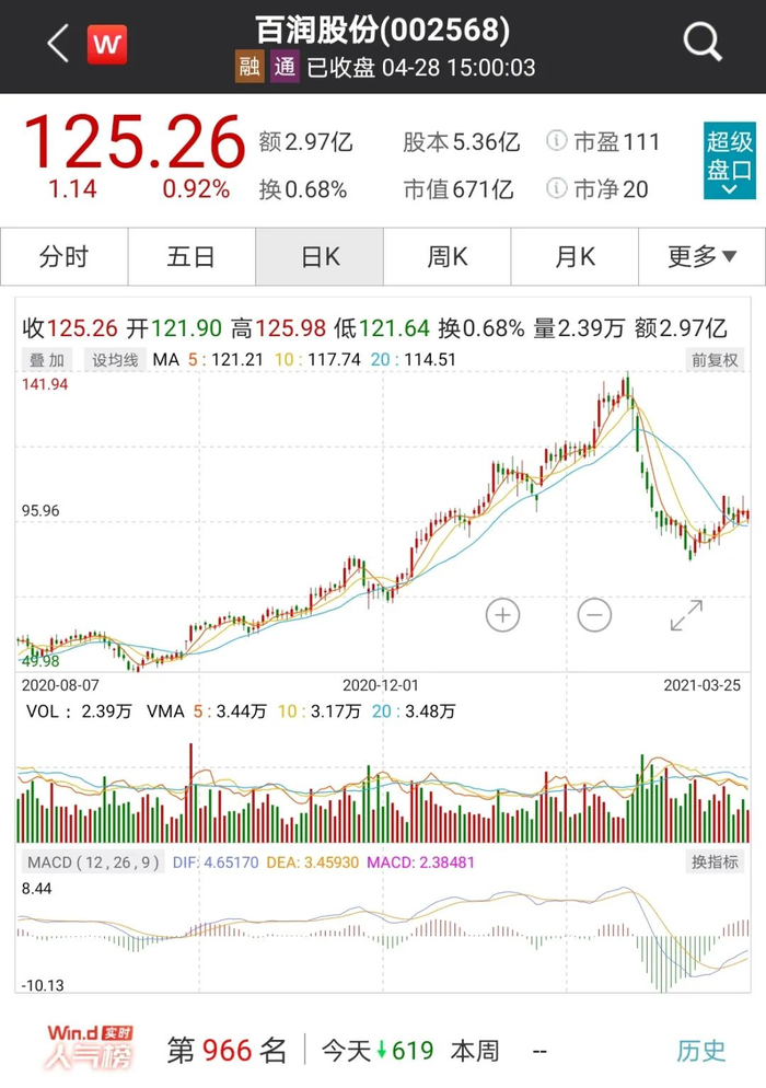 业绩利好刺激下,百润股份股价一路走高,百润股份此笔定增也即将在今年5月中旬迎来解禁,截止4月28日收盘,百润股份报收125.26元,相比增发价格上涨了99.84%,易方达中小盘参与的这笔定增浮盈超过2.86亿元。