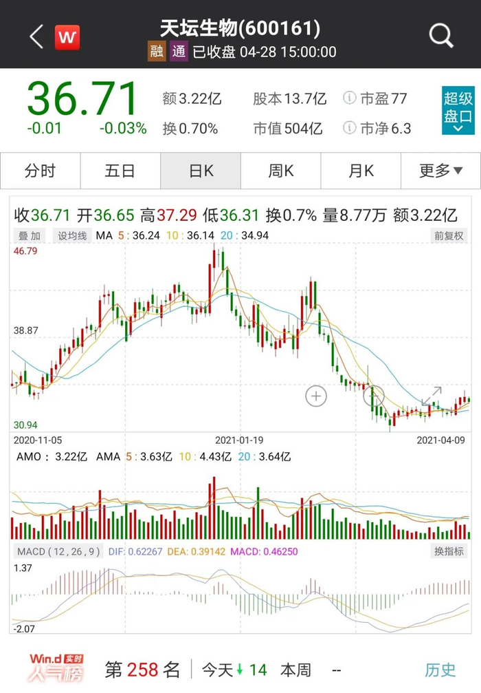 天坛生物是张坤旗下基金多年重仓股,在天坛生物股价调整的半年多时间里,易方达中小盘基金更是连续3个季度加仓天坛生物,截止4月23日,易方达中小盘、易方达蓝筹精选两只基金合计持有天坛生物8052万股,按照4月28日收盘价计算,持仓市值接近30亿元。