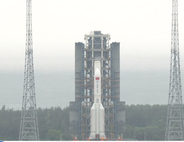 负责给空间站运送补给的天舟货运飞船,则由细长的长征七号担当。