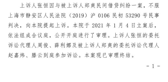 不过,张恒对二审判决结果仍存异议,已表示将向上海高院申请再审。