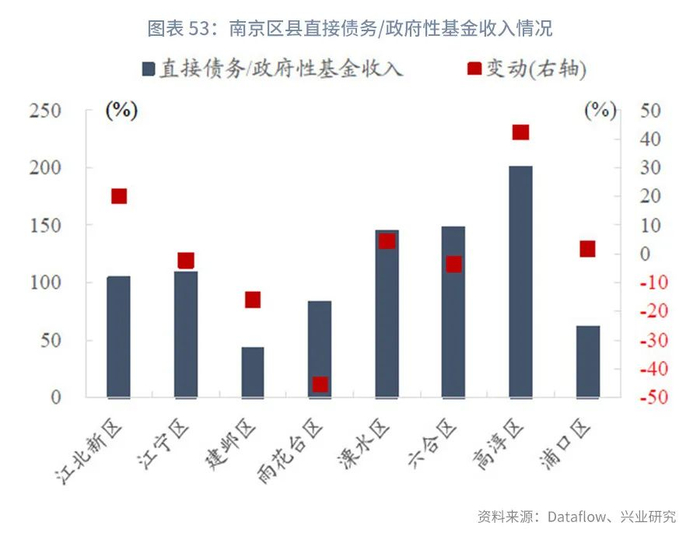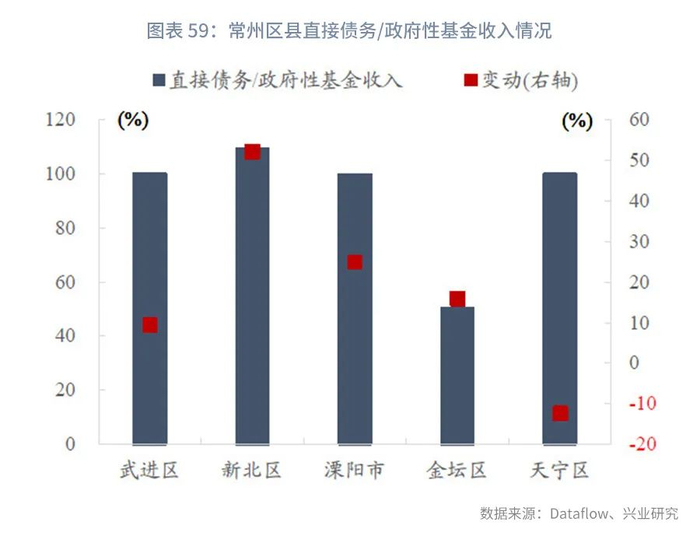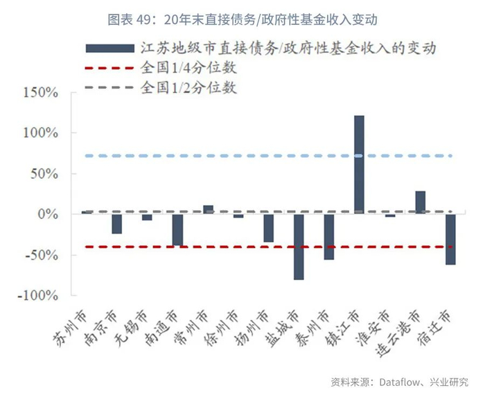 我们用政府直接债务/一般预算收入、政府直接债务/政府性基金收入两个指标观察江苏区县的政府直接债务负担变化。