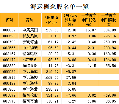 6只海运概念股一季报净利润翻倍增长