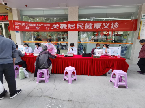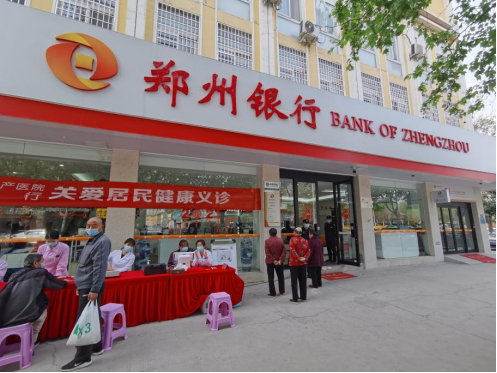 在该网点,一幅醒目的红色条幅挂在银行大厅的玻璃橱窗前,“关爱居民健康义诊”8个醒目的大字跃入记者眼帘。该网点联合郑州美中商都妇产医院精心组织儿科、妇科等多个科室的六名医护人员正在这里进行为期三天的义诊、咨询活动,今天是活动的第二天。