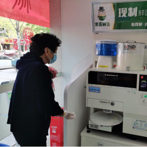 众所周知,银行可以办理金融业务,但放台面条机现场制作新鲜面条,这波操作着实少见。随后,记者在该网点营业大厅靠玻璃窗的一角,见到了这台大概有一人高的智能面条机。干干净净的白色机器上方,分别放置着纯净水箱和面粉桶两个透明容器,能清楚地看到里面的水和面粉容量是多少。一旁的工作人员热心地为记者操作演示了一遍。原来,看起来硕大的机器,只需一键操作即可,绿色的按钮一按,仅仅10秒钟,面条就直接从机器的出口出来,缓缓盘落至盘中。再撒上面粉,装进袋子,居民们就可以拎着新鲜的面条回家下锅了。