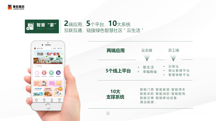鲁能物业依托科技化、数字化信息管理平台,实现企业智能化转型升级。打造的“绿色云中心”是由绿色运营管理系统(物业数字化运营平台、云物业APP等)、绿色生活服务系统(慧生活APP、绿色生活商城等)、绿色物联管理系统(智慧物联管理平台、智能设施等)、绿色生活大数据中心组成,强化物业绿色管控手段。通过先进的信息化技术应用,实现智慧管理与绿色运营、绿色生活的有机融合,构建绿色、智能的数字化服务体系。