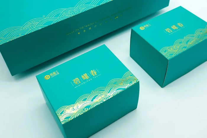 盒面清新配色缀以烫金海浪,传统中国风与茶元素相结合,尽显端庄大气。