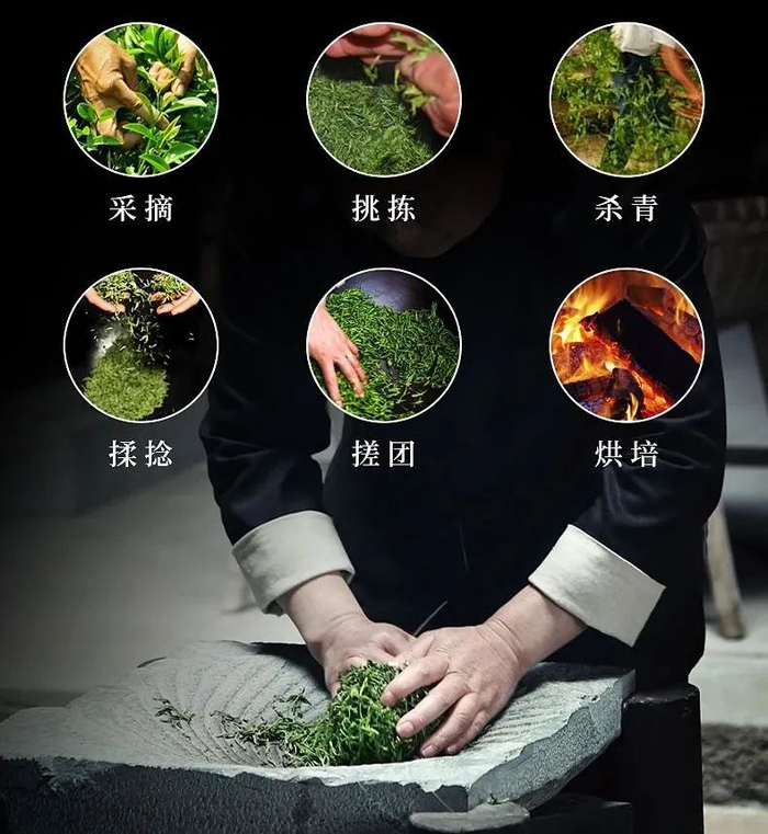 再经过一系列专业的杀青、揉捻、搓团、烘焙等加工步骤才得以完成。