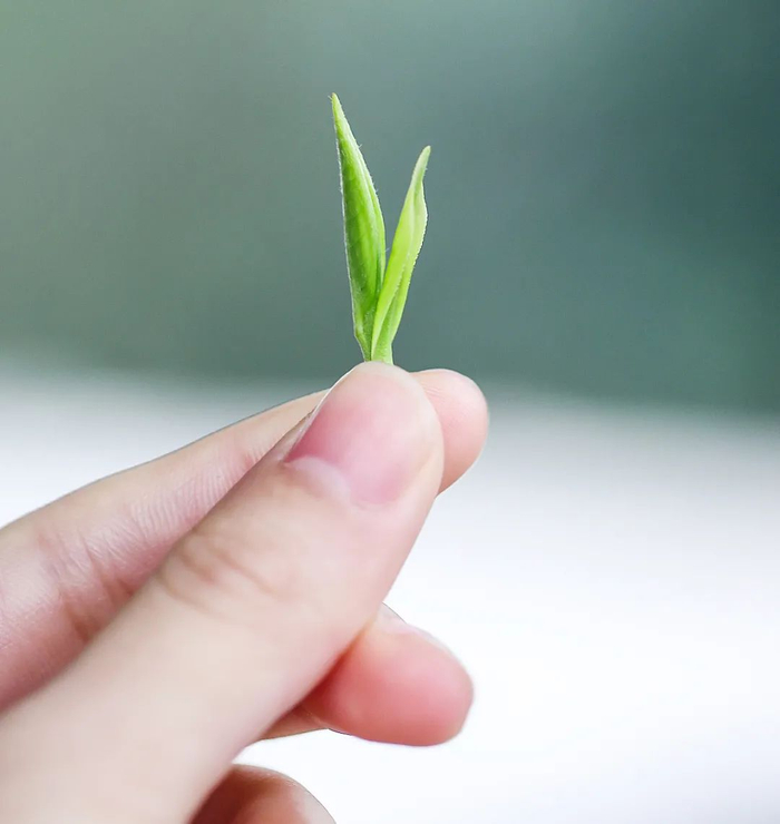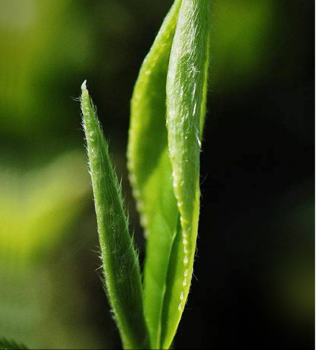 细细观察,茶叶上有很多细嫩的白色绒毛——茶毫,越多就说明茶叶越嫩。