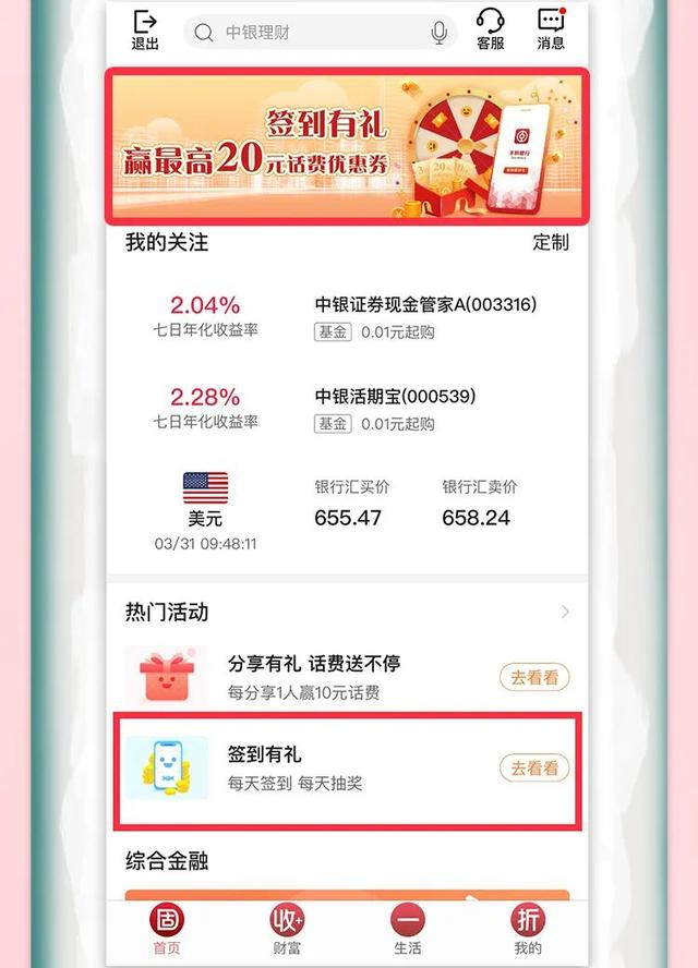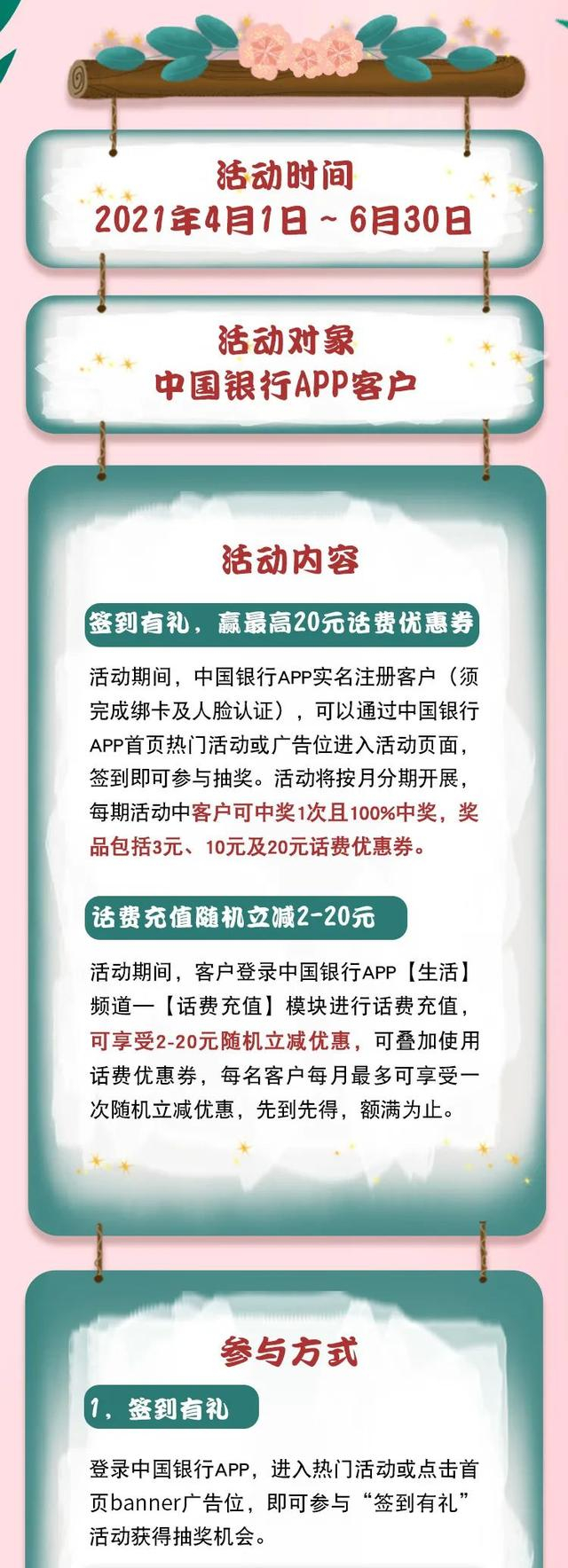 「双重惊喜」手机银行签到+话费充值送惊喜,“5”不住的优惠