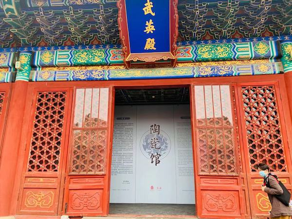故宫博物院“陶瓷馆”创建于1952年,最初位于慈宁宫区,此后,几经迁移和改陈。如今,经过两年多的筹备,新陶瓷馆位于紫禁城外朝西路、熙和门以西的武英殿区,与之前陶瓷馆所在地原文华殿对称呼应,分别坐落于中轴线西、东两侧。武英殿始建于明初,康熙年间曾在此设修书处,同治、光绪年间曾遭火焚并重建。1914年古物陈列所成立,武英殿与文华殿一道被开辟为陈列室举办文物展览,并对公众开放。2008年至2016年,武英殿曾被用作故宫博物院书画馆。武英殿南向,面阔五间,进深三间,黄琉璃瓦歇山顶。须弥座围以汉白玉石栏,前出月台,有甬路直通武英门。后殿敬思殿与武英殿形制略似,以穿廊与前殿相连,形成“工”字形建筑格局。东、西配殿分别为凝道殿、焕章殿,院落东北有恒寿斋,西北为浴德堂。