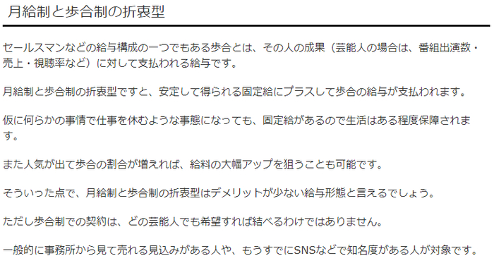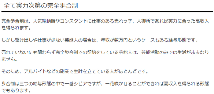 在日本,如果一个艺人有事务所的话,那么他一般有三种收入模式。
