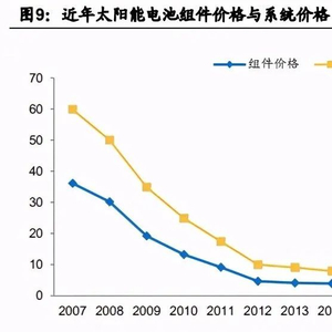 太阳能组件价格大幅下降,带动光伏电站投资成本下降,经济性显现。根据CPIA的 数据,太阳能电池组件的价格从2007年的约36元/W降低到2020年的1.57元/W,下 降幅度达95.6%,带动光伏电站投资的系统成本从60元/W左右下降到3.99元/W。由 于各国的电价不同,随着光伏发电成本的不断下降,在不同地区陆续实现平价上网, 2020年中青海海南州的竞价项目中标电价为0.2427元/W已经低于当地的煤电上网 电价,光伏发电的经济性逐渐显现。