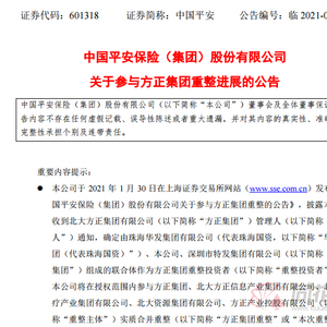 方正集团重组方案来了!中国平安带头 最高掏出500亿拿下70%股权 相关上市公司股价已异动