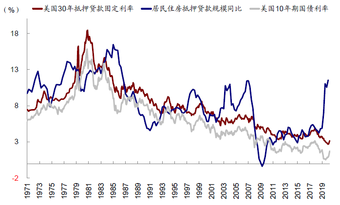 图表: 美国居民房贷同比增速基本上与利率负相关