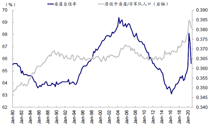 此外,若我们只考虑首次购房而暂不考虑改善型住房需求,居住模式从租房转换为购买也主要发生在个人可支配收入显著抬高的阶段。房屋自主的快速抬升常伴随着可支配收入和出租空置率的提升(除金融危机前的购房热潮主要受到购房政策宽松驱动),体现出在收入好转时,租房人群将居住模式从租借转换为购买。