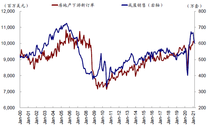 图表:成屋销售和下游商品新订单高度相关