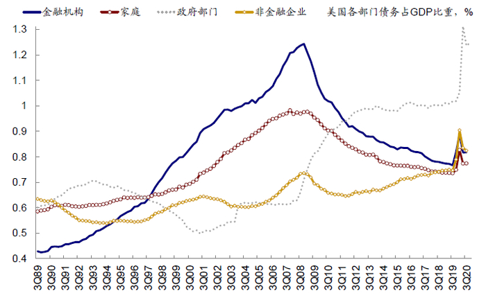 图表:…金融危机后居民、金融机构和企业部门均经历了去杠杆