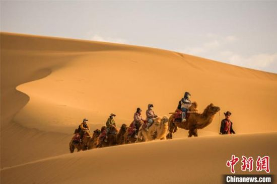 敦煌月牙泉添"古风"元素:驼户穿"胡服"行走大漠