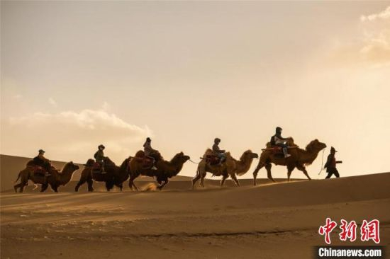 原标题:敦煌月牙泉添"古风"元素:驼户穿"胡服"行走大漠