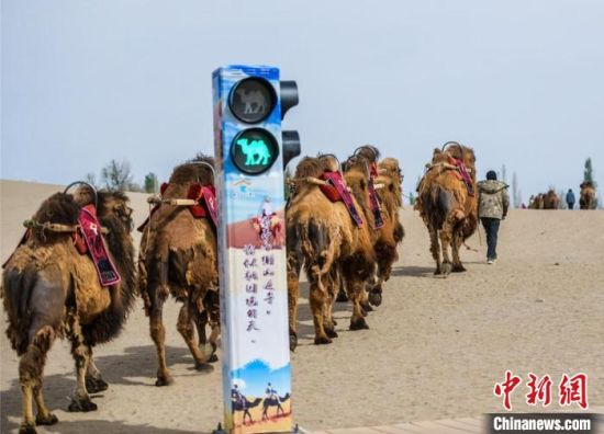 4月底,甘肃敦煌鸣沙山月牙泉景区再添“古风”元素。景区牵骆驼的驼户穿上“胡服”,戴一顶高高的带有帽檐的驼色帽子,丝路风情愈发浓郁。据工作人员介绍,景区“胡服”的设计理念主要来自古代丝路驼队胡人的形象,帽形的设计像“山”字,背面看起来又像金元宝,寓意促进农民增收,景区旅游越来越好。