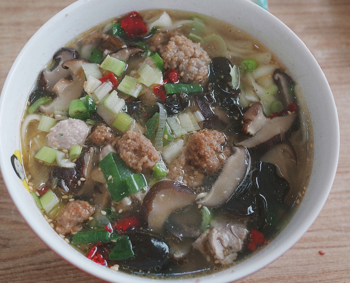 一碗18元的香菇面,里头有香菇、虾米、木耳、里脊肉片、汆肉丸子和油炸丸子等原料,再撒上葱蒜和辣椒,香气四溢。“以前还要放排骨和酥肉呢。”香菇面店的老板李瑞强说,父亲1988年开始卖香菇面,父亲去世后,他在镇上开了店,希望能将这份味道长长久久传承下去。
