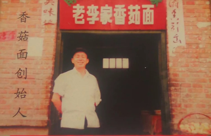 李冲站在自己香菇面店前。翻拍老照片